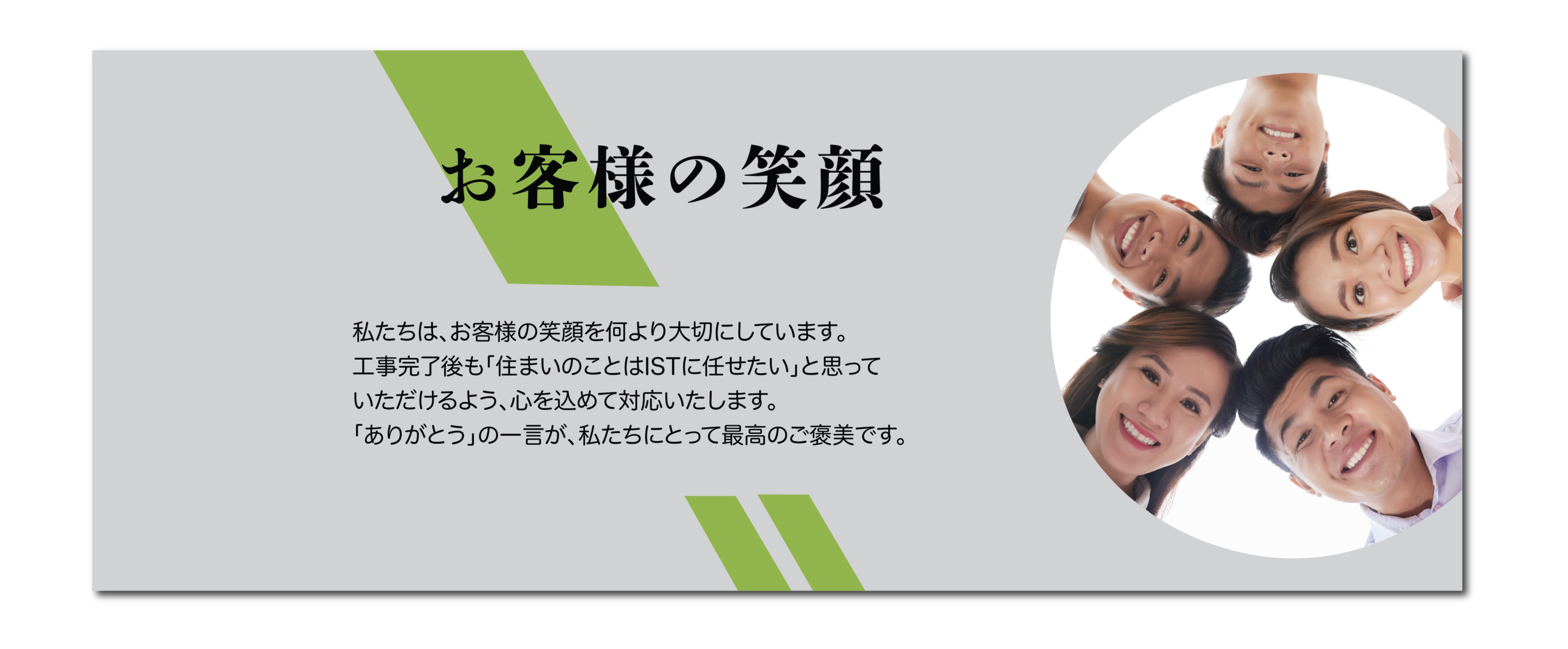 お客様の想いを丁寧に汲み取り、より良い価格・施工・ご提案をお約束いたします。