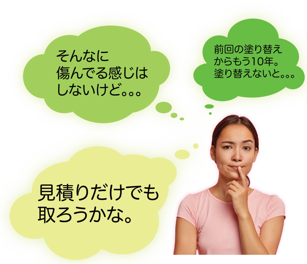 外壁塗装は「10年」「フッ素だから15年」といった目安の時期が来たら、見積もりを取り、状態を確認して塗り替える。